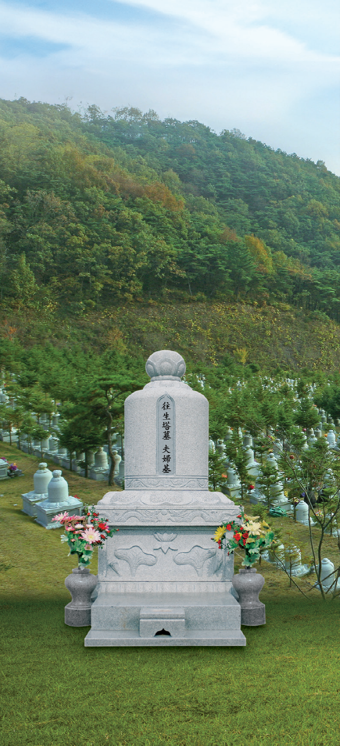 왕생탑묘란? 일반인도 사용토록 스님 부도 개량 왕생탑묘는 스님들의 부도(浮屠)를 일반인 들도 사용할 수 있도록 한 납골묘이다. 왕생탑묘는 깨끗하고 단단한 화강석으로 조성한다. 또 따로 비석을 세우거나 축대를 쌓을 필요가 없고, 사찰 경내에 있어 불자라면 고민할 여지가 없는 최적의 장묘시설이 다. 왕생탑묘는 영가 1위를 안치할 수 있는 개인기와 부부를 나란히 안치할 수 있는 부 부기, 4위까지안치할 수 있는 가족기, 64위까 지 모실 수 있는 문중기까지 다양하다. 매장과 화장 절충 “자식들 성묘할 곳 없다”우려 불식 왕생탑묘는 화장과 매장을 절충한 장묘시 설이다. 왕생탑묘에 고인을 안치하기 위해서 는 화장을 해야 하지만, 분묘의 봉분 역할을 하는 탑신에 유골을 모시기 때문에 매장 형 식을 취한다. 아미타우스가 처음 장묘사업을 시작할 때만해도 “자식들이 성묘할 곳도 없 고 부모가 두번 죽는 것과 같다”는 이유로 화 장에 대한 거부감이 컸다. 그러나 왕생탑묘 는 화장과 매장 형식을 절충함으로써 이런 우려를 없앨 수 있었다. 불교장례문화 모범 “왕생탑묘 개발 후 화장문화 급변” 아미타우스는 불교식 장례문화인 화장을 개발·보급해 국토의 비효율적 이용, 호화대 형묘지, 무연분묘 등 매장 위주의 장례문화 가 가질 수 밖에 없는 문제점을 극복하기 위 해 1996년 왕생탑묘를 개발했다. 당시는 납 골묘라는 개념조차 생소했던 때였다. 왕생탑묘 개발 직후인 1998년 27.8%에 불과했던 화장률은 이후 급증세를 보여, 2010 년에는 67.5%에 이르렀다. 아미타우스는 왕 생탑묘 개발과 아울러 각 종교 지도자를 초 청해 ‘화장장려 세미나’를 개최하는 등 화장 문화를 보급하기 위해 노력해왔다. 이같은 노력은 2000년 ‘장사 등에 관한법률’제정, 2001년‘묘지법’개정 등으로 결실을 맺었다. |