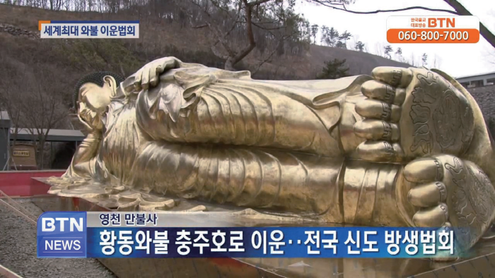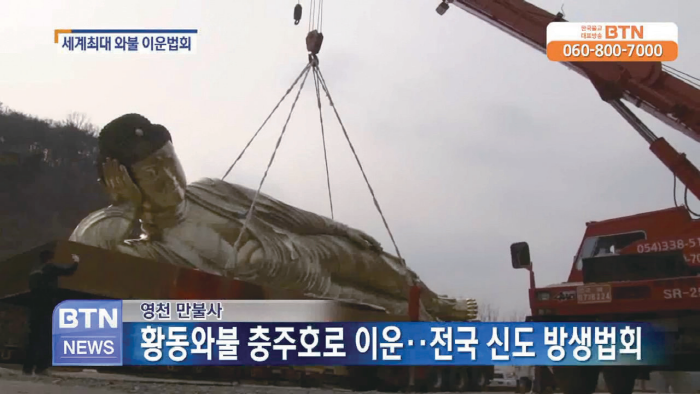 코로나로 인해 사찰행사도 영향 2016년 거행된 황동와불 이운 방생법회를 되돌아보다. 코로나 19의 여파로 사찰 방문객이 줄고 있는 요즘, 각 사찰에서는 많은 행사들 이 축소 혹은 취소 되었다. 매년 초에 진행하는 방생법회 또한 예외는 아니다. 이에 2016년 거행했던 만불사 황동와불열반상 이운 방생법회를 사진과 함께 재조명해 보고자 한다. 아침 일찍 거대한 황동와불 앞에 모인 스님들이 이운을 준비하고 있다. 대형 크 레인과 특수무진동 화물차가 사찰 앞마당에 들어서고 장정 여럿이 함께 들어야 할 만큼 굵은 체인을 와불에 두르고 있다. 영천 만불사는 2016년 1월 28일, 방생법회를 내륙의 바다라 불리는 충북 충주호 에서 진행했다. 거대한 와불 뒤로 우리나라에서 가장 크고 깨끗하다는 충주하고 웅장하게 펼쳐 진다. 이로써 전국 신도들은 어디서건 반나절에 닿을 수 있는 가까운 거리에서 만불 사 황동부처님을 친견할 수 있게 되었다. 마침 내리던 보슬비는 소백산을 넘어 눈으로 바뀌어 법회장 일대는 때 아닌 설경을 볼 수 있었다. 법계도를 돌아 사람키를 훌쩍 넘는 부처님 발바닥을 마주한 신도 들은 그동안 담아뒀던 가족의 안녕과 나라의 평화를 위해 기원하였다. (밀인스님/ 전국에 많은 불자님들을 모시고 대한민국의 정중앙인 이곳에서 대작 불사 아울러 방생법회를 거행하게 되었습니다. 모두 이 어려운 난관을 슬기롭게 지 혜를 모아서 타개하시고 모두 행복한 가정과 모든일이 성취되시길 빕니다.) 전국에서 모인 5천여 신도들은 부처님 앞에서 방생으로 생명의 소중함을 돌이키 는 의미있는 시간을 가졌다. 방생에 참여하기 위해 어머니를 모시고 서울에서 충주 까지 내려온 한 불자는 본인의 결혼과 어머니의 사업번창을 기원하며 미소 짓기도 했다. 이처럼 2016년 이루어졌던 만불사 황동와불열반상 이운 방생법회는 오늘날, 수 많은 불자의 원력과 신심으로 모두 하나가 되었던 만불사만의 특별한 행사로 기억 되고 있다. 김상미 기자 |