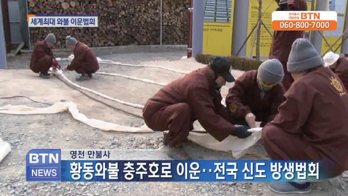 코로나로 인해 사찰행사도 영향 2016년 거행된 황동와불 이운 방생법회를 되돌아보다. 코로나 19의 여파로 사찰 방문객이 줄고 있는 요즘, 각 사찰에서는 많은 행사들 이 축소 혹은 취소 되었다. 매년 초에 진행하는 방생법회 또한 예외는 아니다. 이에 2016년 거행했던 만불사 황동와불열반상 이운 방생법회를 사진과 함께 재조명해 보고자 한다. 아침 일찍 거대한 황동와불 앞에 모인 스님들이 이운을 준비하고 있다. 대형 크 레인과 특수무진동 화물차가 사찰 앞마당에 들어서고 장정 여럿이 함께 들어야 할 만큼 굵은 체인을 와불에 두르고 있다. 영천 만불사는 2016년 1월 28일, 방생법회를 내륙의 바다라 불리는 충북 충주호 에서 진행했다. 거대한 와불 뒤로 우리나라에서 가장 크고 깨끗하다는 충주하고 웅장하게 펼쳐 진다. 이로써 전국 신도들은 어디서건 반나절에 닿을 수 있는 가까운 거리에서 만불 사 황동부처님을 친견할 수 있게 되었다. 마침 내리던 보슬비는 소백산을 넘어 눈으로 바뀌어 법회장 일대는 때 아닌 설경을 볼 수 있었다. 법계도를 돌아 사람키를 훌쩍 넘는 부처님 발바닥을 마주한 신도 들은 그동안 담아뒀던 가족의 안녕과 나라의 평화를 위해 기원하였다. (밀인스님/ 전국에 많은 불자님들을 모시고 대한민국의 정중앙인 이곳에서 대작 불사 아울러 방생법회를 거행하게 되었습니다. 모두 이 어려운 난관을 슬기롭게 지 혜를 모아서 타개하시고 모두 행복한 가정과 모든일이 성취되시길 빕니다.) 전국에서 모인 5천여 신도들은 부처님 앞에서 방생으로 생명의 소중함을 돌이키 는 의미있는 시간을 가졌다. 방생에 참여하기 위해 어머니를 모시고 서울에서 충주 까지 내려온 한 불자는 본인의 결혼과 어머니의 사업번창을 기원하며 미소 짓기도 했다. 이처럼 2016년 이루어졌던 만불사 황동와불열반상 이운 방생법회는 오늘날, 수 많은 불자의 원력과 신심으로 모두 하나가 되었던 만불사만의 특별한 행사로 기억 되고 있다. 김상미 기자 |