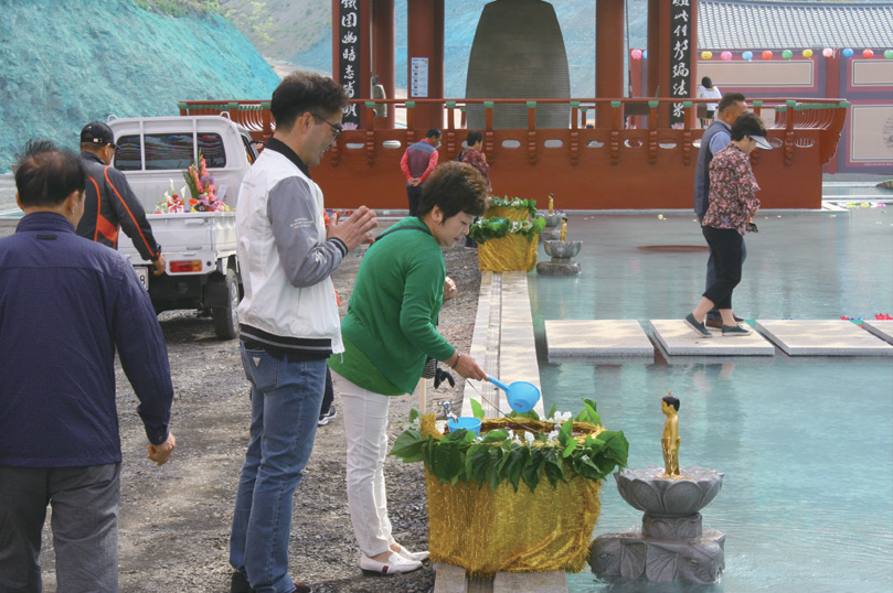 부처님오신날 관욕대에서 소원을 빌며 관욕하고 있는 불자님의 모습 ① |